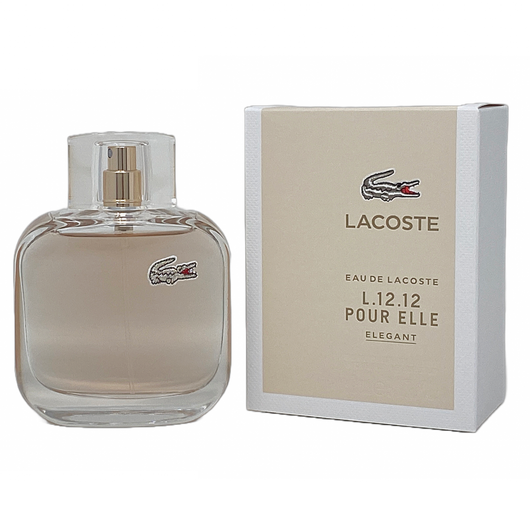 Eau de Lacoste L.12.12 Pour Elle Elegant de Lacoste Fragrances es una fragancia de la familia olfativa Almizcle Floral Amaderado para Mujeres. Eau de Lacoste L.12.12 Pour Elle Elegant se lanzó en 2015. Las Notas de Salida son cítricos, casia y pimienta rosa; las Notas de Corazón son lirio de los valles (muguete), mimosa y violeta; las Notas de Fondo son heliotropo, vetiver y vainilla.